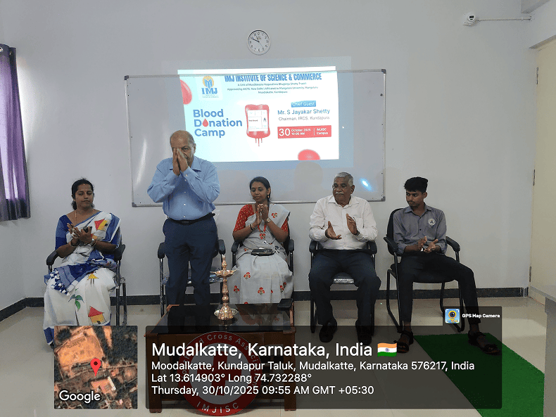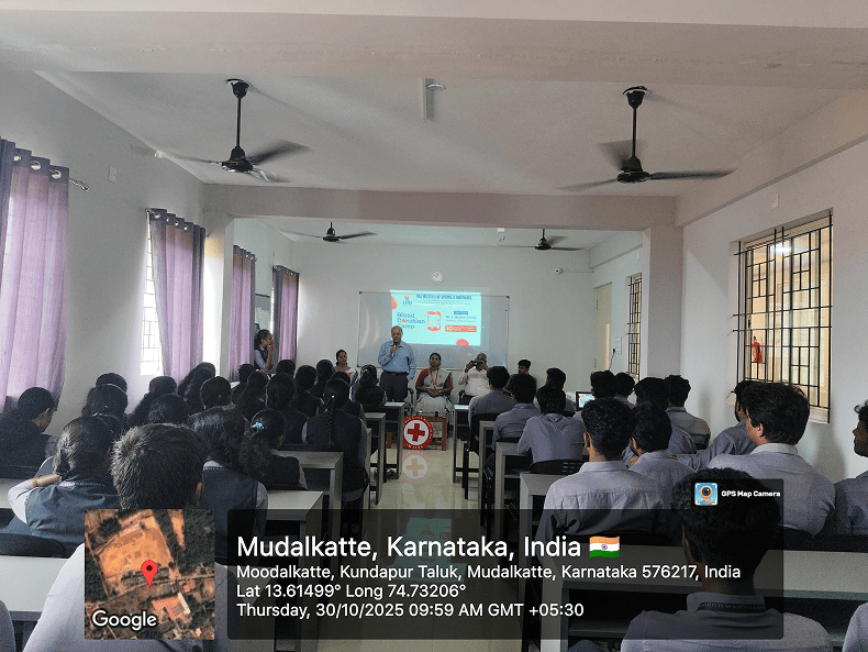 Resource Persons: Mr. Jayakar Shetty, Chairman, IRCS, and Kundapura Mr. Shivaram Shetty, Treasurer, YRC, Kundapura. The Youth Red Cross Association organised a Blood Donation Camp to promote the spirit of voluntary blood donation and community service among students. The resource persons guided participants on the importance of blood donation, safety measures, and maintaining healthy practices during the process.