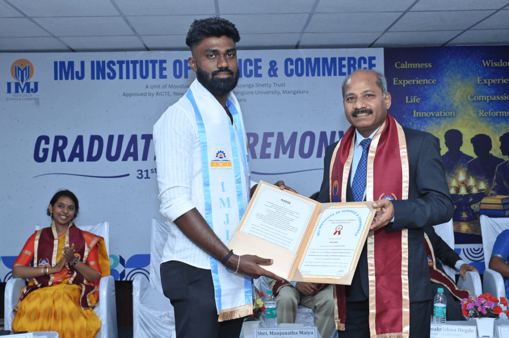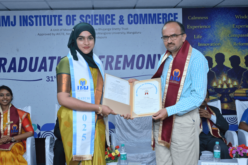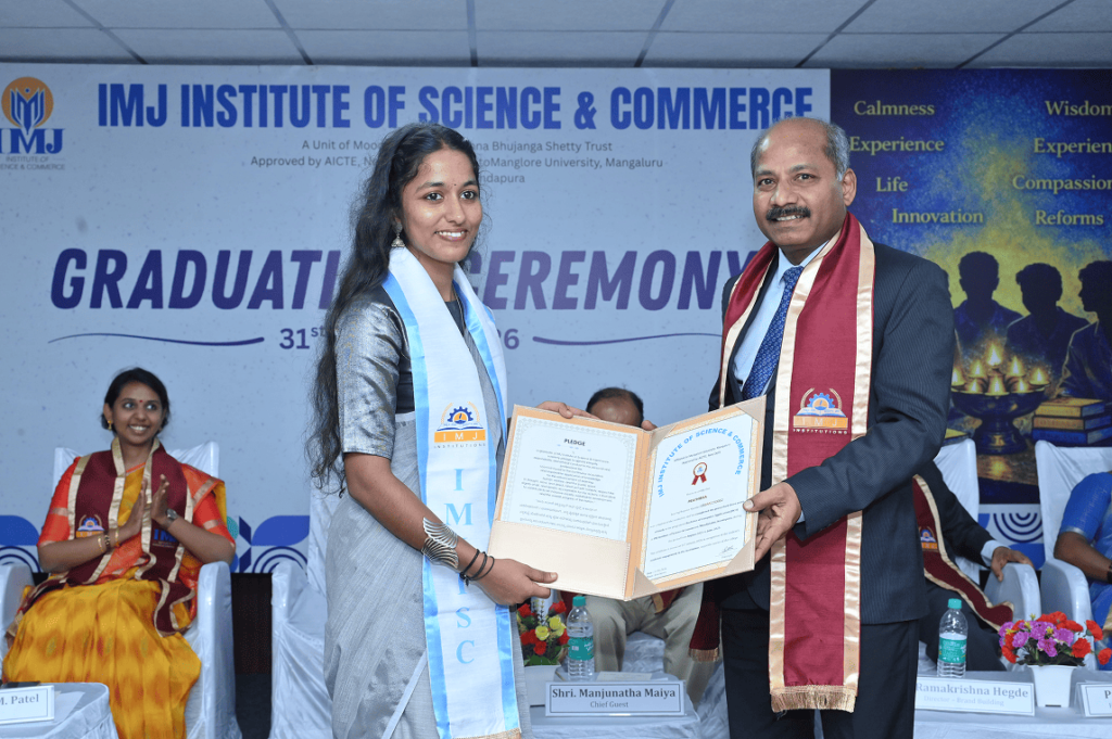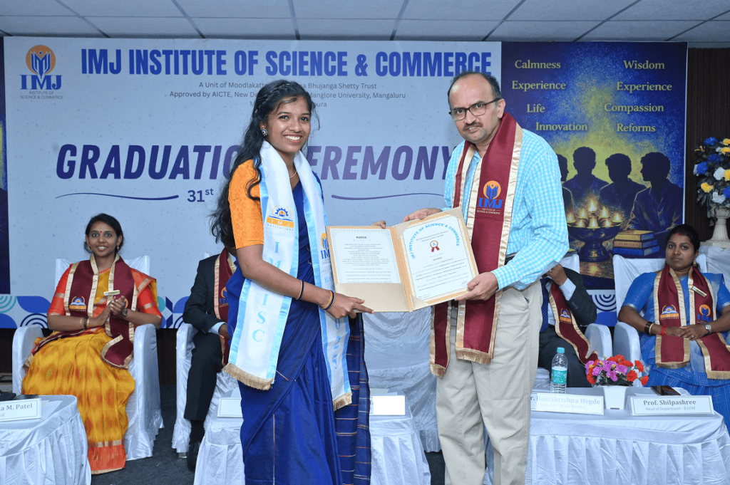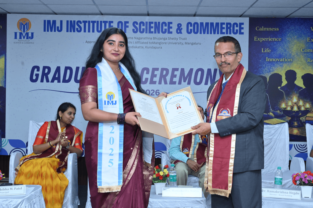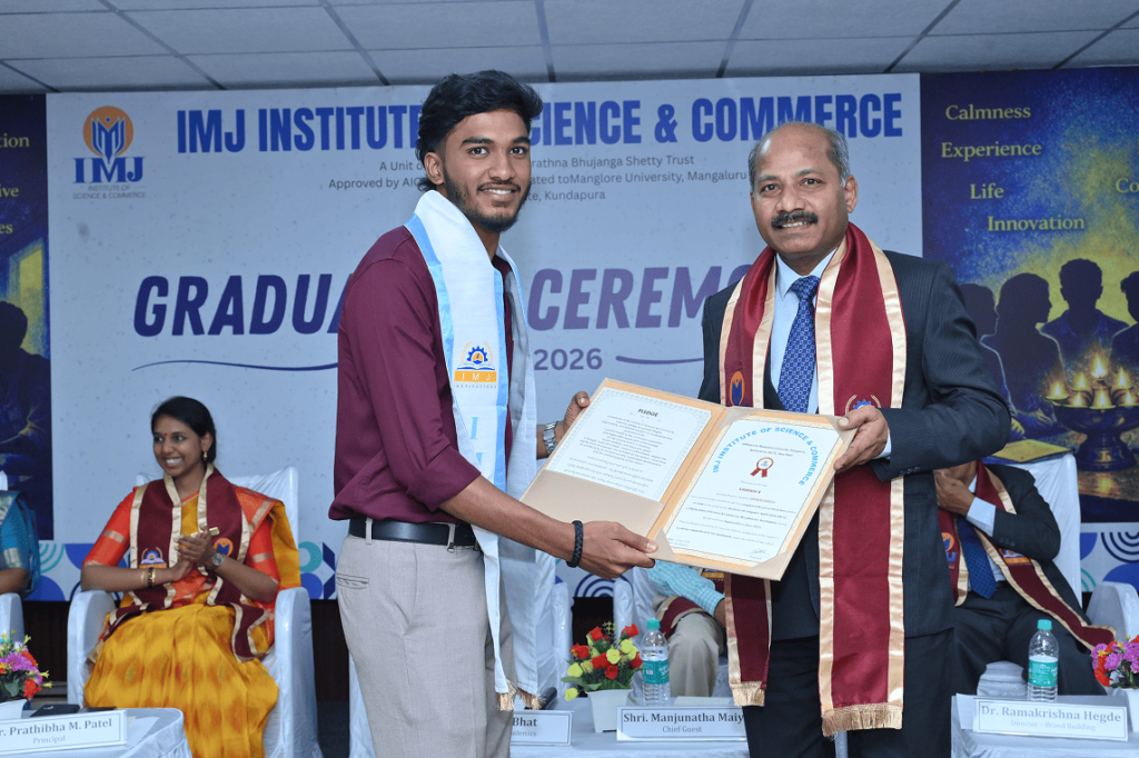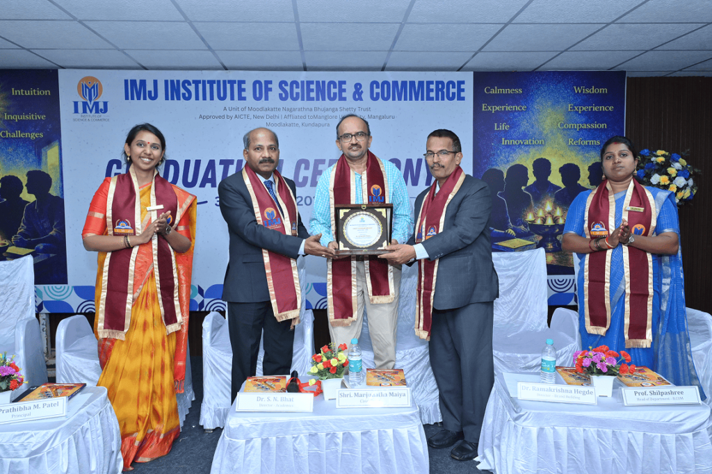 Organised by: Internal Quality Assessment Cell The IMJ Institute of Science & Commerce (IMJISC) conducted its first Graduation Ceremony. Shri Manjunatha Maiya from Philips Innovation Campus attended as the Chief Guest and spoke about the importance of Artificial Intelligence and the responsible use of technology. During the ceremony, the first batch of B.Com and BCA students received their graduation certificates. The programme also included the release of the college magazine, “Vidyaveene – Kale Sahithyagala Swara Saurabha.”