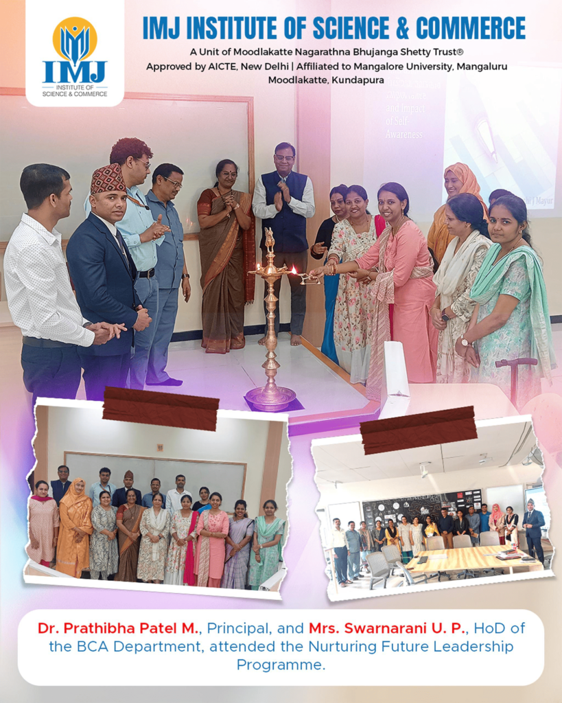 Our faculty members Dr. Prathibha M. Patel, Principal, and Mrs. Swarna Rani U. P., HOD Computer Science department, participated in the Nurturing Future Leadership Programme, a five-day immersive Capacity Building Programme aimed at faculty development and improving the overall learning experience, conducted under the Malaviya Mission Teacher Training Programme (MMTTP), held at TAPMI.