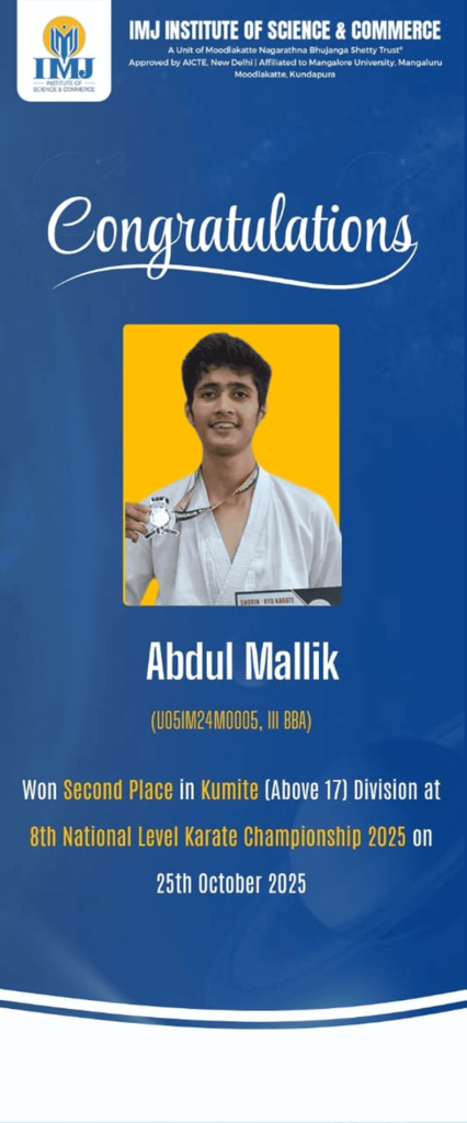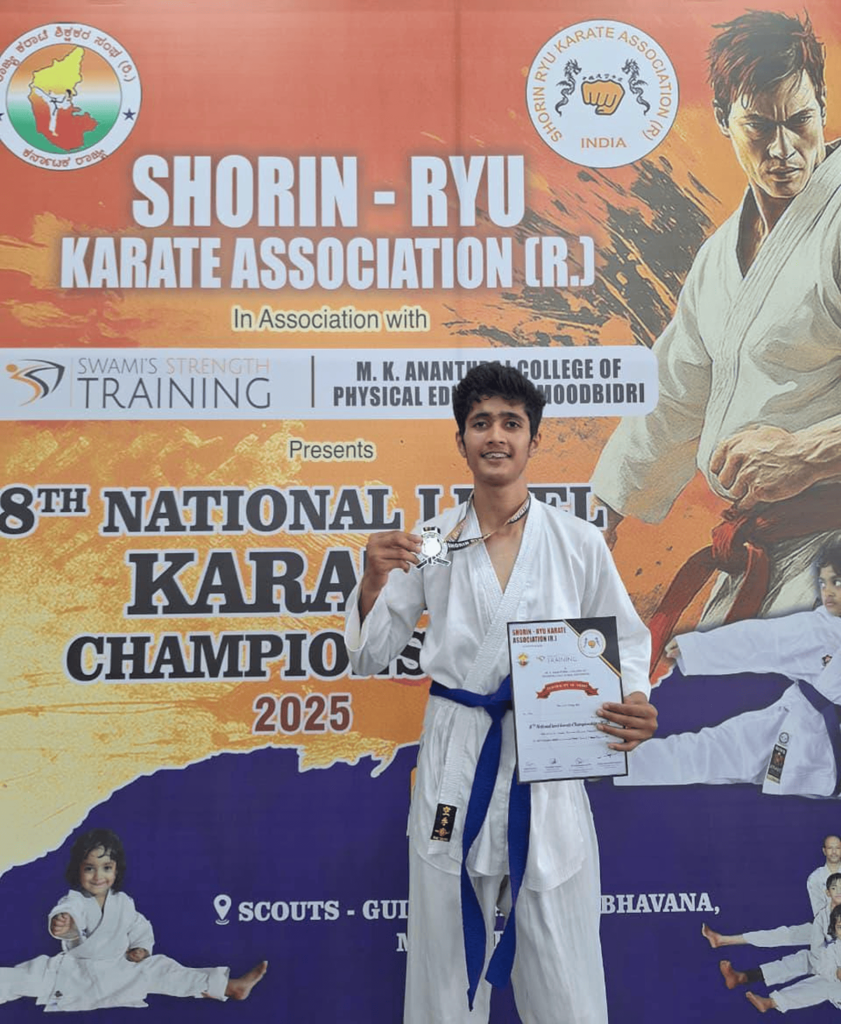 Our student Abdul Mallik secured Second Place in the Kumite (Above 17 years) division at the 8th National Level Karate Championship 2025.