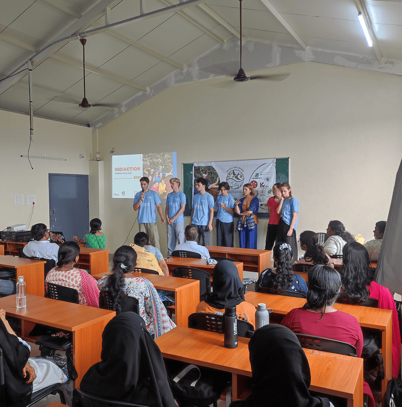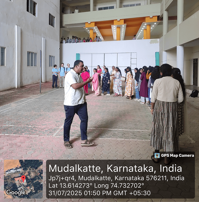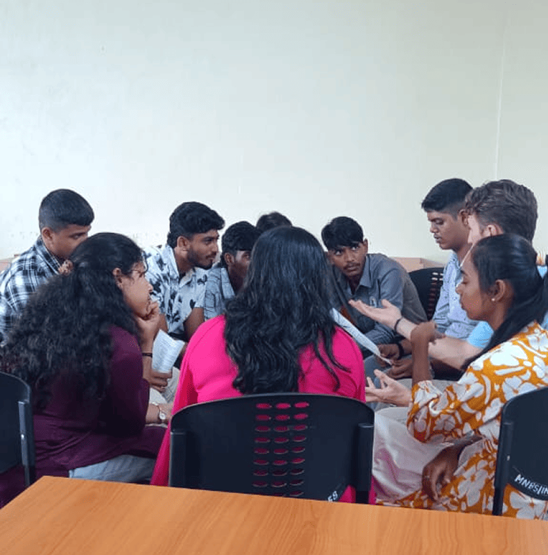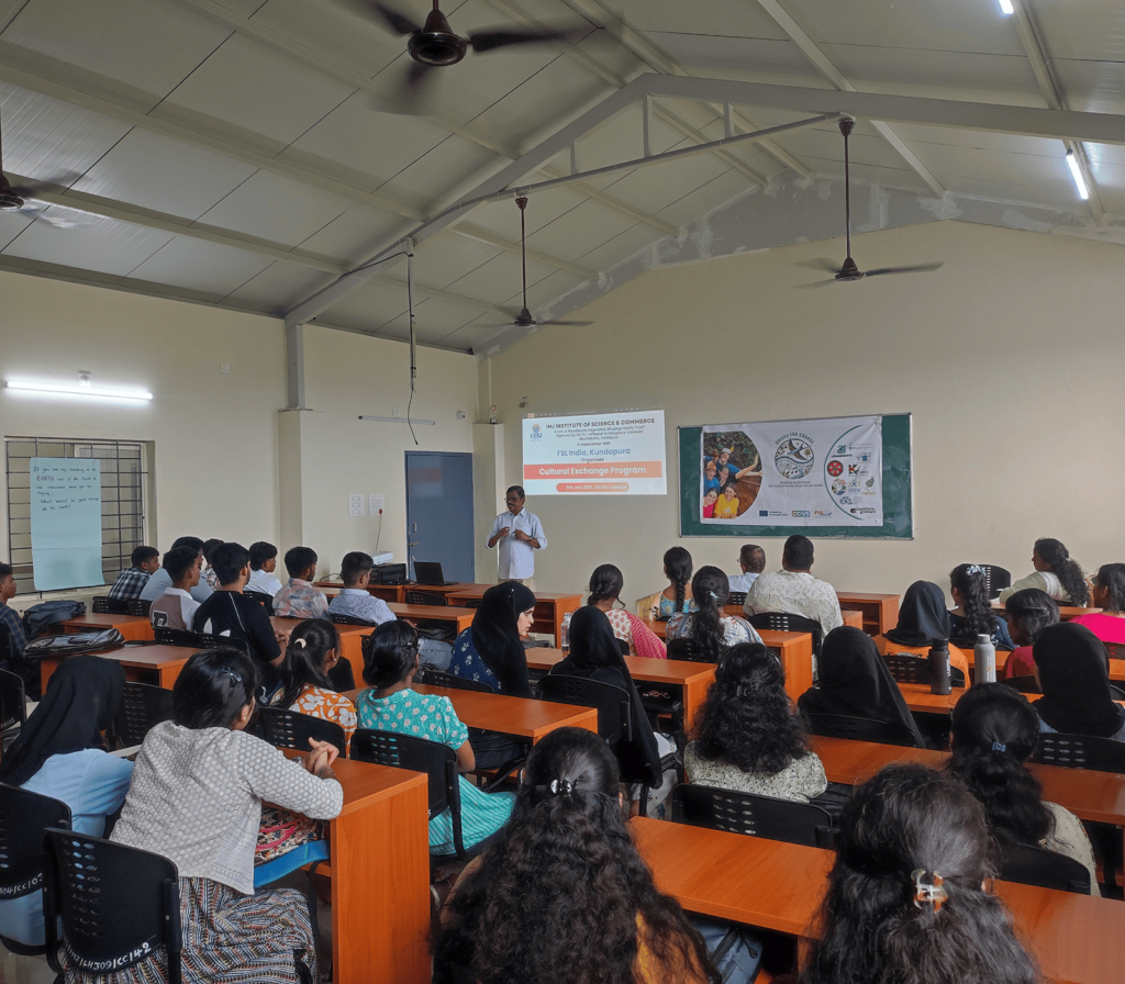 Organised by: Community Service Club Resource Persons: Mr. Ragland, Deputy Director Ms. Raksha, Youth Development Officer Mr. Dinesh, Facilitator Ms. Nagaratna, Chief Coordinator Description: The session on Local Action and Cultural Exchange was conducted to promote cross-cultural understanding and collaborative learning with students from France. The programme included group work activities, during which the France students presented and explained their projects, encouraging interaction, teamwork, and knowledge sharing among the participants.