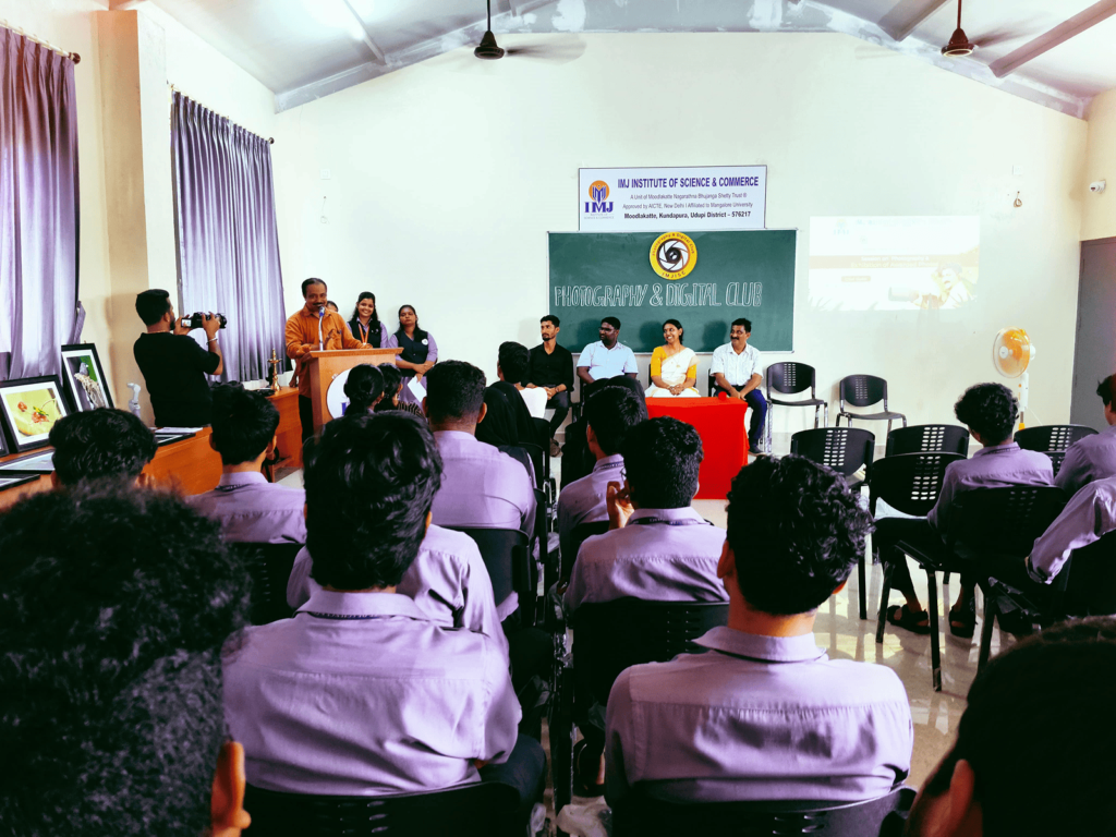 Session on Photography & Exhibition of Awarded Photos Organised by: Photography & Digital Club Resource Persons. Mr. Santhosh Kundeshwara, AFIAP Wildlife Photographer and International Awardee Mr. John D’ Souza, Senior Editor, Vijay Karnataka . The Photography & Digital Club organised a session on photography along with an exhibition of awarded photographs as part of the club inauguration activities. The resource persons shared professional insights on photography techniques, visual storytelling, and media perspectives, inspiring students to explore creativity and excellence in photography.