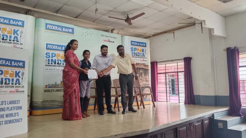 Shree Raksha (I BCA) participated in the Speak for India Debate Competition zonalround 2 organized by Federal Bank at the School of Social Work, Roshni Nilaya, Mangalore. We are proud to share that Shree Raksha was selected for the next level of the competition